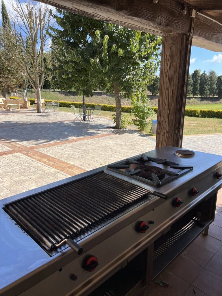 Si llogueu la casa sencera podreu fer ús de la cuina d’exterior amb brasa, fogons, neveres i pica.